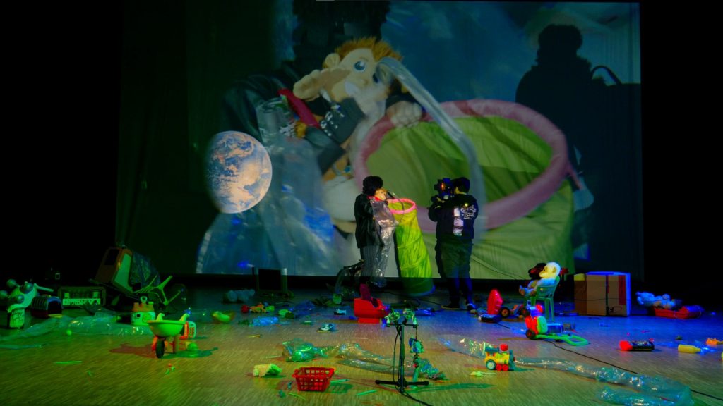 De et avec Mélanie Marie et Nicolas Maurel, création sonore HUG* ; produit par l’A.ssociation M.ouvement A.rtrope en partenariat avec les Associations La Ruche Ressourcerie du Pays de Falaise et Demain en Pays de Falaise, l’Epicerie Autrement, la Ville de Falaise et la CDC du Pays de Falaise avec le soutien de la DRAC Normandie / Préfecture de Normandie dans le cadre du Plan de Relance 2021 ainsi que le CDCN de Falaise – Association Chorège pour le prêt de studio…